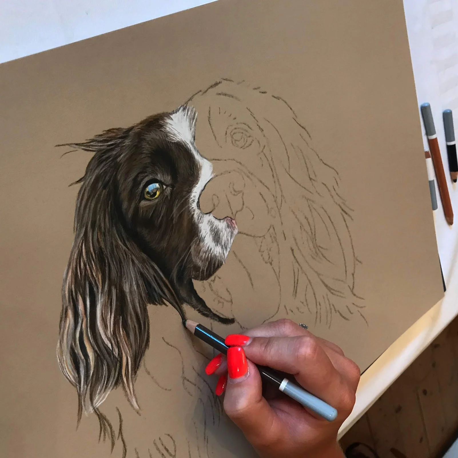 I use high quality pastel paper which comes in lots of colours. Once we have decided on a photograph of your pet(s), we can discuss the background colour in order to compliment your pet or the interior of your home. I will send you regular updates of your pet portrait whilst it is in progress.